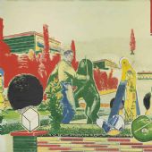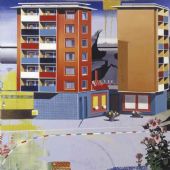尼奥·劳赫(Neo Rauch,b.1960)是新莱比锡画派中的领衔人物。《广场》( Platz )(2000) 是他的代表作品。尽管形式上有波普动漫画的效果,但是其中的图像并非像波普那样借用广告招贴类印刷品,而是画家自己创造的,带有超现实主义的错位和梦幻感,画面上的人物、建筑和树木断断续续地呈现于不同的空间中,没有具体的叙事性和连贯性。在这幅结合了东德式社会主义现实主义和西德式抽象主义的画面中,劳赫对社会主义的和资本主义的乌托邦进行了双重解构。