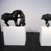 六骏图从其诞生,无论名称、样式、造型手法,还是应用级别、位置场所、礼仪规范等等,都承载着极丰富的精神内涵和开放性的象征意味。在历代中国人的共同铸造和集体记忆的推动下,建构起一种社会和文化认同。昭陵六骏石刻及其衍生出的新作品共同置身于一种精神氛围,这种氛围源于一种相互关系,相互阐发,相互构成,而这种关系又具有着内在的谱系。每一个新形象的出现,不是简单地还原历史,而是既有对原有关系的重复和强调,同时也由于新的因素的出现而生发出更多的可能性。多元的六骏表现仿佛一个艺术平台,是大唐“图式”的再创造,完成了对精神氛围的构造,树立为一座可以移动的纪念碑,成为我们心灵中的“魂”与“根”,成为大历史下的生命记忆。