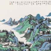艺术与社会始终存在着一种对立性的紧张关系,它在现存的物质世界之外构筑了人类的另一个精神世界,在这个物质利益的追求成为主流的时代,坚持人的精神独立和沉思冥想就成为个人生存的真实性前提。林容生的山水画在宁静与冥想之中重建人与自然的诗意化联系,使我们在忙碌的日常生活之中时时拥有一份青绿的心境和青绿的情怀。对于这样一位与大自然谦和的对话者,我们有信心看到他对当代中国画更多的贡献。