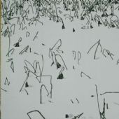 刘丽萍的笔下不仅有夕阳下的荷塘系列,还有冬雪皑皑下的林木枝芽,大自然的歌者已经休眠,但仍然可以听到不休眠的琮琮琴声,在刘丽萍的画面中万物没有凋残,而只是冬藏的积蕴。《雪地》、《早春》里虽然是满地的厚雪覆盖着大地,弥漫着雪的严峻和妖娆,但画面的一隅可见积雪欲融待融,大地向外张望,万物自有生命本能和生活意向,冬雪正是为着不飘零的生命而来的,正所谓“白日不到处,青春恰自来。苔花如米小,也学牡丹开”。画面中大篇幅的留白显现出一种空寂的力量,白雪之下覆盖着新的生命,等待的是春的一抹新绿。《荷迹》里冬雪荷梗的下面是积蕴的生命,是冬至春远乎的期待。刘丽萍仰观俯察,仿佛在以自然的节候和万物展示时光与岁月,达到通彻与安宁,迎接来年的丰腴、繁华与生机。她所绘出的是有我之境中心灵所直接领悟的物态天趣、造化和心灵的凝合,她以自己的艺术语言灵动了画面。
