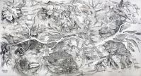 二〇〇九年,我在纽约的一个画廊展览,我在开幕前两天到达,画廊是空白的,运来作品在美国海关被扣了。老板很轻松地笑着说:反正我知道你今天到,你会有办法的。于是喝酒。喝到半夜,我说,明天你去唐人街花二十美元,给我买一瓶墨汁,两只毛笔。第二天中午我开始在墻上画画。连续画了24个小时。画出了一个展览。下午开幕前还来得及回住处换了一身衣服。那时正是金融危机最厉害的时候,切尔西的画廊都在展小画。我觉得这次很酷,很刺激。