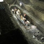 邱志杰在他的这套版画之中,有意无意之间地将自己放入了那份长长的追忆者的名单,其追忆的具体地点也都是历代文人们常到之处,而他以奇特的想像力参与到“追忆”之中,为我们带来了具有他个人鲜明烙印的“超现实”幻像,譬如,在《失败之城》中,原先安置于四方城中心位置的碑身消失了,驮碑的龟被复制成四只,依附于四壁,而每一个龟身驮取的不再是碑,而是镂空的碑形门洞,地面上刻有成串的涟漪形状,暗示着一颗石头以打水漂的方式所做的运动,令人联想到这座“石头城”在浩瀚的历史时空里所划过的轨迹,这样的场景表达不独是昔日的追忆者面对一处静态的遗迹时所生的忧伤而空幻之感,更是将物象进行了挪转变换,改写成一个关于中国古老的政治和历史的寓言,艺术家本人的观照显得哀而不伤,是从此时地地做出的一种怀念与质疑、抒情与分析的综合反应。