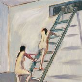 看来,武艺不仅对小时候常看的小人书留有深刻印象,甚至,他在有意无意之间,还把迷恋小人书时的那一份激动,尽量保留在描绘当中。具体来说就是,他的线条的稚拙感和自我成长时的某个年龄段的感受密切相关,他似乎不愿意丢弃这一感受。随着个人画技的长进,他可能还比以往任何时候都更有意识地固置这一感受。我想,这可能就是弥漫在武艺作品中的所谓稚拙的内在内因吧。便也正因为这一点,表面的稚拙和生涩就只能是表面。相反,正是这一层表面,让武艺成为今天众多人物画家群中的孤独者,因为他的风格无法归类到现成的所有潮流之中,哪怕是那些“先锋”的或“流行”的潮流当中。武艺成为这样一个艺术家,他的画自有一种明快感,而对他的研究,却因为归类的困难而出现了解释上的障碍。最后只能证明,武艺就武艺,他的矛盾体就是他的内在想象与外在生活不断冲突的直接产物。或者,他的艺术实践与生活实践根本就没有矛盾,所谓矛盾,恰恰就是他自造的迷宫,让观众不知不觉地走进去,之后,却突然发现找不到出口了。只是,找不到出口也不要紧,这可能就是武艺的目的,让欣赏停留在他的迷宫中而忘乎所以,并在这忘乎所以中忘掉了矛盾本身。