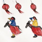 刘义庆在《世说新语》中提示文人们最好的生活态度是“隐逸”或“栖逸”。但是,生活在现代社会的画家又能到何处去“隐”去“栖”。世相熙熙攘攘,人事纷乱复杂,画家们是无法视而不见拔身而逃的。于是只能走“大隐隐于市”的道路,在现实的处境中作一番精神的“栖逸”。武艺就是这样,回到自己的生活里去,在普普通通的生活中去画那些“质朴和生命的东西”。那些东两本来是日常生活中的“俗”物,然而一旦被“栖逸”的心态所围裹,也就出落成“超越”凡俗之壳的“逸态”。在2000年武艺的新作里,还可以见到他对现实更大范围的注视与感受。他以《中秋》为主题,画出了彼岸世界与此岸世界的关系,平和地表示自己的现实关注。可见他的精神与心理并未远离人间烟火,只是体现出一种应有的距离。