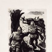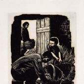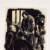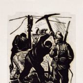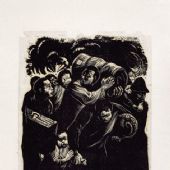 1939年,进入延安鲁艺学习不久的古元创作了他的第一套木刻连环画《走向自由》。故事讲述了雇农的“他”,饱受地主压榨、资本家剥削、日寇侵略之后,最终蜕变为一名革命战士的历程。故事的主人公虽然是一位贫苦的农民,却多少带有一点古元亲身经历的色彩。他1938年加入家乡的抗日救亡宣传队,同年离家前往陕北,此时日军侵略的战火已经烧到了广东。古元离家的第二年,他的父母、二姐、小妹、小弟相继死去。战争的罪恶莫大于给无数普通人带来无名的灾难,如古元家庭一样遭遇的何止千万?这套木刻中有一幅《善良人遭毒手》,直陈所有中国人最不能忍受的悲剧,也正是这样的悲剧最终演变为压垮中国那根冬日枯枝、激起劳苦大众奋起反抗的最后一片飞雪。这套连环画不仅是一套十六幅的黑白木刻,更宣示着一个20岁青年的仇恨、决心和希望。
