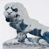 经过山门,进到寺里,正殿前是一对石狮子,左右分立,元代的。听接待我们的小张讲文革时当作四旧拉出去扔了,前几年才从垃圾场找回来的。左边是母狮,脸已经砸烂,右爪按着一只小狮子,没了脑袋,可以想象当时粗暴的场面;右手一雄狮,左爪按一只绣球,较完整,雄风犹在。