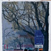 后来有机会看到王玉平在台湾这一个月的大部分创作,心中更是深深地被打动。他大多画些在台生活时吃过的食物、用过的日用品的静物画。就连我去他画室带去的两颗释迦也入了画,画中几乎留住了他们在出门前,放在我桌上时的芬芳。其中特别打动我的是一幅,王玉平画了同行友人在窗前的袜子,微雨不止的台北冬季,窗前久晾不干的袜子,原来灰沉沉的毛玻璃,穿越二楼以上的人眼中的描述看去,泛着淡淡静静的碧蓝。