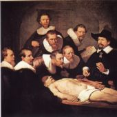 伦勃朗很早就在艺术上显露出才华,二十三岁时,即被做为杰出荷兰青年画家评述在康斯丁,特汉斯的著作之中。二十六岁,他创作的油画群像《蒂尔普教授的解剖课》问世。——他出类拔萃的肖像绘画技巧,生动的人物形象刻画,真实的环境氛围处理,以及他运用光线对比和虚实变化,使画面产生的丰富的空间层次感,并借此造成画面中潜伏的神秘和恍惚中笼罩着疑惧的心理氛围。都显示出,他绘画的语言对观众的心灵的震慑力——他不同凡响的出现,令人震惊。《蒂尔普教授的解剖课》的成功使他一举成名,向他求画的客户和登门求教的弟子接踵而来。精力旺盛的伦勃朗此后一年之中,完成了近五十件订货。从这些作品中可以看到他油画技术的语言已经相当成熟,他对色彩,肌理以及光影的处理,已经开始形成了别具一格的个人风格。得意的青年画家周围围绕着一群衣冠华丽,满身珠光宝器的有产阶级“模特儿”,爱情也追随着他成功而来——他和美丽的莎士基亚的婚姻又使他陶醉在家庭生活的幸福之中。其状况正如他在1636年所画的《在酒馆里的孩子》的情形。画中浪子正是他的自画像——高举酒杯,怀抱娇妻,一幅放浪形骸的纵欲无度的情态。伦勃朗本不善于理财,绝不会量入为出。在这段“人生得意须尽欢”的日子里,他还沾染上了收藏艺术品与古董的习好,以其有限的财力去寻求一种无限奢望的拥有,固然,这可能成为他日后倒运时,经济上难能周转的原因之一,但这个“浪子”的无限奢望,看来不仅仅是物质财富的占有;这位“浪子”要占有、并且渴望超越的是一种无止境的艺术品位。他已具备的才能,使他有可能在面对十六世纪文艺复兴的伟大成就时,产生要与前辈巨人们“一试高下”的挑战欲望,使他会永远不可能满足自己现实的拥有,不会满足在已有的无忧无虑的艺术和生活的小康世界中,去不断重复地描绘那些无忧无虑的题材;让自己的成功变成一种讨取当时顾主们喜欢的一种谋生技巧,也许那样的他,会稳稳当当的度过无忧无虑的一生。然而命运之神没有让这位“浪子”那么平顺而幸运,她却让伦勃朗用自己的眼睛和感受悟识到了艺术的真谛。