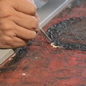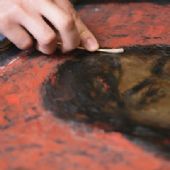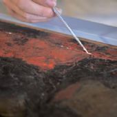 2013年钟涵先生筹备展览,由此我有幸结识了邰武旗先生,亲眼见识了“维基”工作团队的卓越成果,特别是他们团队的严肃认真、热爱艺术的工作热情,令我心生敬佩之心,因此也特意征得美院美术馆同意,特请维基国际艺术品修复中心帮助对《国际歌》进行修复维护。