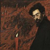 《红烛》来自闻一多第一部诗集的序诗,它以燃烧的红烛比喻吟唱的诗人。燃烧的蜡烛自古以来就是中国文人熟悉的带有感情色彩的象征符号。红烛燃烧成灰,同时放出光明,闻一多讴歌的是“掺杂着伤心之泪的创造光明的燃烧”(谢冕论闻一多)。这与传统诗文中充满无可奈何的悲哀的蜡烛形象既相通,又有变化。而闻立鹏在《红烛》序诗的基础上又发展一步,他强调的是红烛创造光明的燃烧,而省去了“伤心之泪”。度过十年长夜的闻立鹏,在反复诵读《红烛》时,感受到红烛就是他父亲的形象。这个思路与他在《大地的女儿》创作中对象征、寓意的重视一致。偶然看到的一支通红的残烛使他确定了作品的基本意象,然后又把飘动的烛火放大、扩展、重叠,使它融汇成燎原烈火。他这样做的过程,是在艺术上向象征主义的靠拢。画中人物形象的写实性与环境的象征性,反映了他在美术观念上的过渡,也是由于人物的形象对他是具体而亲切的,人物的“意义”及其展开,却是抽象的、理性的。在色调上画中人物头发和衣服的纯正黑色,比幽暗的夜空更深沉、有力,也比远处炽热的烈焰更加饱满、响亮。深沉、强烈的黑一红色调是闻立鹏在《红烛颂》与《红烛颂》之前的作品中多次使用的。因此,可以把闻立鹏80年代之前的创作称为“黑一红时期”。他自称《红烛颂》的色调曾受到敦煌早期壁画上浓重粗犷的墨线与土红底色的启示,敦煌壁画使他感受很深的还有本生故事壁画的“悲枪的气氛”,“悲剧激情与宗教牺牲的崇高感”。不同气质的画家从敦煌壁画中找到不同的使他激动的东西。闻立鹏在敦煌壁画得到的恰是他自己所追求的东西。这与他在一位老同学家中“偶然”看到滴垂着烛油的残烛形象相同,这并不是真正的“偶然”,而只是心理学家所说的长期追寻的动机的隐蔽。他曾说过“自开始学画的那一天起,我就盼望着有朝一日用自己的画笔来表现父亲崇高而亲切的形象”。《红烛颂》创作的顺利进展,从创作主题的最初萌动到画面形式处理的各个环节,它们相衔相扣,这不能不归因于画家数十年的追求、体验。这中间既有情感的积累,也有认识的提升,而这件作品正是他多年宿愿的完满实现。