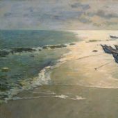 老马作画,不是描摹叙述,而是写意抒情。这样,他的笔法的运用,早已脱出造型状物的初级阶段。运笔的乾湿、枯、润、厚薄疾徐,随心所欲,随意而行,笔到力到。因此画面往往意境深邃,力度丰厚,富有很大艺术感染力。以上这些艺术特点,说明老马的艺术己经更加成熟。他把西方印象派艺术技巧的精粹和东方艺术的写意抒情的本质很好的融会贯通,走出了自己的路。
