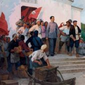 在基本功的训练中,除教师个别辅导外,分阶段地组织有关教师进行集体观摩,研究全班学员的普遍问题,并帮助每个学员在艺术上认识自己的问题和特点。而在创作阶段由于学员分散进行创作(一方面由于校内教室空间有限,同时有些学员的创作题材需要在本地区搜集素材等原因)给教学带来很大困难。有在校内的、有在本城区的、还有在外埠的。为此我们采取了灵活多样的教学方式。除有专任教师进行个别辅导外、同时又集中一批有丰富创作经验的教师组成创作观摩辅导小组,对本市校内外的学员创作每月定期进行一次巡迥观摩,逐个进行研究、可谓“送教到户”。对外地学员比较集中的太原、天津等地,教师也专程前往指导。这样就比较及时地解决学员在创作中存在的问题和困难,能够广泛地听取一些意见,使创作质量不断得到提高,像毛岱宗同学最初在风景画的创作中想吸取中国山水画的传统予以表现,但仅限于以线造型的手法借鉴上,还没有发挥油画的特点,感到有些不妥。后来教师们发现他一幅小色彩稿、既有优美的色调,又有中国画的意象造型特点、认为有发展的苗头,给以充分的肯定和诱导。结果他以抒情写意的手法、用不同的暖色调,画出一套情调明快的田园风景组画。又如:周向霖同学所做《1969年11月12日•开封》一画,表现的是国家主席刘少奇同志死于文化大革命中的情景。教师们特别在主题思想的把握上加以引导,避免渲染文化大革命所造成的凄惨景象的细节描写,而强调着力于表现肃穆,崇高的思想内涵。让观众去思考、去联想。