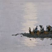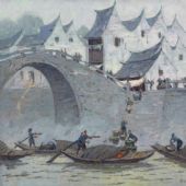 后来又多次赴江南水乡,创作了《水乡晨雾》、《待渡》、《春之声》等。总之,这一时期所创作的作品都是亲身经历所见,感悟所得,是以客观为依据经过主观感受使之升华而产生的。画中人物与所处的环境氛围相融合,从而形成不同的艺术境界和抒情性的情趣。