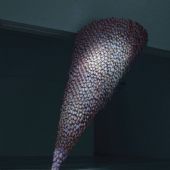 金理:“我看到的是一条龙,特别是第一眼看过去。我走进去看到顶端有一个头部垂下来,我把这个想象成中国龙的胡须。一个龙在起伏,腾在半空,身上有铁钩,抵达神经末梢的痛楚感。这个铁钩把龙的身体钩住,这是一种悲剧感,通向一种崇高。”