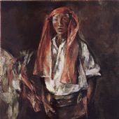 柯尔内留•巴巴是当代罗马尼亚的绘画大师,他的绘画语言极富有个性,以至于我们很容易辩认巴巴作品中的独特形象。巴巴的油画技法基本上是属于古典的、写实的。讲到古典,我们的脑海里很快会想到荷尔拜因、维米尔、普桑、安格尔、大卫等严谨精到的细腻写实,因为当代中国油画家中不少人在这方面很下功夫,并且出现了一批被评论界称之为“新古典主义”的写实画家(这一画风在八十年代中后期由于艺术市场的活跃已成泛滥之势)。其实这只是西方古典油画传统的一部分,类似于中国画中的“工笔”。而西方古典油画还有另一种写实主义的传统,即富有“写意性”的写实画。从巴巴的作品中,可以看到格列柯、伦勃朗、戈雅、米勒、库尔贝等大师的影响。丁一林抓住巴巴这一综合性的特点,从巴巴入手,又进一步了解和研究那些影响了巴巴的古典大师的艺术,从而在古典写实主义传统中发现了西方油画中的一脉相传的“写意”传统。另一方面,丁一林选择巴巴,以他的肖像画为课题,把形象的典型性和绘画的表现性有机地结合起来,寻找表现当代中国人的心灵的道路,在这方面取得了重要的进步,拓宽了当代中国肖像画的发展格局。