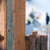 展厅入口,随意摆放着废弃的木制窗框,这是展览的空间入口,却更像是一个日常生活的遗迹或是废弃处理车间,而这些废弃的木制窗框则构成展览系列作品的主要结构要素。入口展墙上宋冬爸妈的两段生活语录揭示了展览作品的创作方法论和意义诠释:“你认为没用的东西捡来都用得上,你现在还没看到它的价值,要物尽其用”;“如果你能把天天吃的大白菜做的花样翻新、美味可口、出神入化,那就是你的价值”。