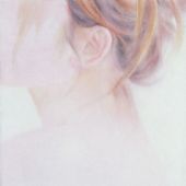 画面的地晕染是围绕肤色展开的。肤色,仅是肤色。没有将线来肯定形态。晕染,仅是晕染,贴着现实的起伏,带着对形态的理解作晕染。晕染仅是方法,而辨别构造,适度的强调体积的结构,更多让构造在暗示中完成。肤色的质感,肤色的柔性,肤色不可捉摸的流动性在徐华翎的晕染中生出了一种朦胧感,并有那么一点虚幻。而这种朦胧与虚幻与线体辉映,与线条交融,让实体交融在洁白的素绢中,素绢辉映出明晰的光亮。在光亮与空间里生出青春的生机,更是生命永恒的忆念。