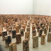 《浅山》是由一千五百块旧砖组成的大型装置阵列,来自同一栋拆毁的建筑,但表面又都存有经过手工切割形成深浅不一的沟痕,这一艺术改造使得标准化生产的砖生成了迥异不同的视觉差异,也就改变曾经同处一栋建筑的同质属性,在新的装置阵列中又带有一种新的整体关系可能。