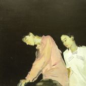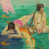 他与她,是最个人的、最亲近的关系,同时又是最普遍的关系,普遍到每一个人。所以,两个人的主题是人性的主题,而与这人性的主题相配合的是周亭作品的绘画性。她的对造型、色彩的驾驭能力使其作品具有一种挥洒自如的魅力,灵动活泼,富于人情味儿。