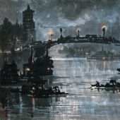 于洋:四十年代的时候,宗其香用水彩画夜景画,后来寄给徐悲鸿,也得到了非常积极的反馈,并建议他用水墨画来表现夜景,并在1942年“重庆夜景”山水画展上,徐悲鸿亲自为学生主持,还撰写文章予以点评:“宗其香用贵州土纸,用中国画笔墨作重庆夜景灯光明灭,楼阁参差,山势崎岖与街头杂景,皆出以极简单之笔墨。昔之言笔墨者,多言之无物,今宗君之笔墨管含无数物象光景,突破古人的表现方法,此为中国画的一大创举,应大书特书者也。”从这一点来讲,宗其香承载着徐悲鸿的希望,同时也推进了徐悲鸿的中国画改良路径。