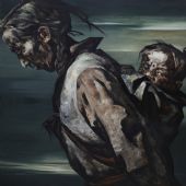 1997年我们刚归国不久,对国内眼花缭乱的美术创作感到迷茫,正在创作十字路口徘徊彷徨之际,叶楠的《重负》入选全国青年美展并获奖。后来得知詹建俊先生很喜欢这件作品,这又一次给叶楠很大的鼓励,促使她坚定地走上自己的创作之路。之后叶楠创作了一系列作品,参加了许多大展,确定了她的方向,逐渐被中国美术界所认可,成为一个崭露头角的女画家。2006年叶楠在邵大箴先生的推荐下,协助詹建俊先生用3年的时间完成《黄河大合唱》,虽然由于她的造型能力和手法和詹先生的要求相距很大,使她颇感吃力,但她认为通过这次创作经历,从詹先生那里学习到了许多东西,例如对大的构图的完美的追求,对造型的深入研究和表现,叶楠在整理此书的作品时认为,她的作品从黄河大合唱之后有了一个比较大的变化,更能够深入进去,更加耐看了。叶楠在她的《从黄河大合唱谈历史画创作》一书中详细记录了协助詹先生创作的过程。除了美术的创作的意识、修养、技术和受益匪浅外,她更提到了詹先生的为人对我们的影响。一般认为这样的老先生找助手创作,大部分工作都是助手的事,但詹先生从一开始的构图就手把手带着叶楠创作,在最后的半年,詹先生每两三天就来画室创作一整天,最后3个月几乎天天来,那么大面积的黄河水都出自詹先生之手,最重要的冼星海除打稿外的最后表现全是詹先生完成。所以最后才能有画面如此大的气势。可詹先生一定坚持把国家给的不多的经费给叶楠一半,叶楠无奈,从美院要来詹先生的工资卡号,将经费打过去,詹先生竟然和师母一道排队取出一大包现金硬塞给叶楠,还说:如果不拿,以后就不能去先生家了。叶楠从詹先生家出来说:这样的先生太值得我们尊重了,应该告诉后人,也是我们这些做教师的永远的楷模。