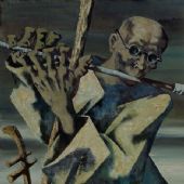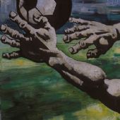 叶南的作品贴近生活,她以敏锐的观察力,总能迅速地把握时代和民生的热点问题,把自己对时代脉搏的感应,所闪现的思想火花,激起的情感波澜,化作画面强烈的视觉形象而直击人们的魂魄。她除了2007年到2009年与詹建俊老师合作过一张巨幅的历史画《黄河大合唱——流亡、奋起、抗争》外,她个人几乎没有宏大叙事的大场景的画,但她关注社会的视角,所触及的面却极为广泛,画出了宏阔的社会图景。“古城往事系列”中我们看到了古城中《锔锅》的小商人、拉《洋车》的车夫、《算命》的瞎子,吹着《酸曲》的卖艺人,还有《磨刀》匠,《担子》工等底层百姓的世态炎凉。在表现当代青年风貌中有《振臂一挥》的球手,有《奔》中健壮的女运动员,有《射门》中守门员紧张接球的刹那间。还有《坐台》的小姐,中了《头彩》的嘻极而发狂的人。让人感受到当今年轻人的生动的精神风尚。在《风化》中用自然界风化现象,揭示着岁月将消融一切存在过的事件与物象,让人醒悟人只是宇宙中的尘埃而己。她以自己所见,所知,所感提升为对历史、人文、自然的哲思。在她的作品之中,总有一种忧患意识渗透其中,深深地叩击着人们心灵。从最初的《孤独》组画至《孤独》之二的《重负》(获国内《走向新世纪——全国青年美展》奖)那背负着沉重木桶直不起腰的藏妇,在一无可依的旷野上艰难地独行。之三的《箫声》清冷的月光,伴随着枯树旁的吹箫人,那凄凉的悠悠箫声,弥漫着了广阔寂寞的原野。就连之五的《月光》下的篓子、瓢盆也都显得冷清落寞。在当今,五光十色光怪陆离的消费社会中,在喧嚣繁忙的生活中,科技发达得有太多的享受,太多的娱乐,而人反而在内心深处被惆怅、寂寞,孤独感所笼罩。叶南的画,吐露了这种疏离的孤独感,向往着“诗意的栖居”的精神家园。