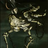 2,形象肢体极端夸张的奇异感:她那撑满画面的形象,那局部手、脚、铁链超比例的夸张,总有被压缩而要反弹的力感,造成了奇异的突兀感。