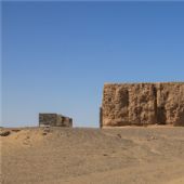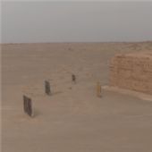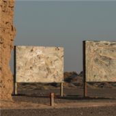 尽管这是一件极具挑战性的工作,刘商英和他的工作团队还是克服了重重困难让这次展览得以实现。他们不断寻找在巨大风沙下更有效的固定方式,并尽最大努力掌握好作品在这个自然空间的节奏——作品与城墙之间的关系,作品与宽广荒漠之间的关系,作品与作品之间的关系,人在作品间穿行的路线与进出城墙的感知,画面的朝向、顺序、内容与时空文明的交流……他们运用等比例缩小的模型尝试各种作品摆放的方案,像一个作曲家演奏音乐,在辽阔大地和古城墙边创作出或短促跳跃或深远长鸣的音符。