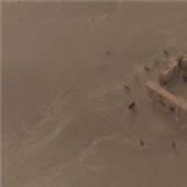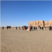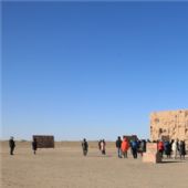 场地的选择仍然是本次展览最值得探讨的部分。当这个几乎没有先例的展览真正拉开大幕,带给观者异常强烈和复杂的感受,超越“宏大”。地处中国北疆的额济纳人迹罕至,古称居延,是古丝绸之路上的重要一站。土尔扈特蒙古语所称的“先祖之地”,在历史研究中常被作为北匈奴最早的首都,虽坐拥11万平方公里辽阔土地,常住人口仅3万有余,境内多为无人居住的沙漠区域。