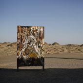 没有依附在美术馆的墙上,站立在荒漠上的画作仿佛蓄势待发,随时可以迈开步伐。红城四周的三十幅画作两两背靠背、背负着彼此,形成十五组双面体,还有一副巨大的画作立在红城之内,面对门洞与城墙开口。三十一幅画作没有长幼,它们离而不散,以不同姿态相互打量、彼此关照,形成了自由自在而丰富多变的关系。它们之间也在对话,默默地便心领神会,它们是兄弟姐妹。