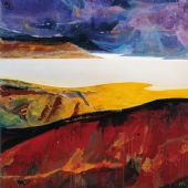 这些作品向我们展示了商英心中的圣境。他的向往在这些作品中绝少人迹,多是苍茫辽阔的大地与湖泊。他喜画湖。明亮平静的湖面与乱云舞动的天空,形成强烈的对比。他所绘的湖常常是画面耀眼的光之源。商英的画是他主观的表现而非客观之再现,当他初对如此景色时“感到了对景写生的苍白和无力”,而他在一年之后将巨大的画布搬到了高原圣洁的湖畔。他似乎要进入梦境,希望自己的内心,手中的画笔,在真实的梦境中合而为一。商英的画呈现给我们的是他个人私密的内心世界,他的人生体验,他的生命感悟。从中我听到了他在原始荒野中的自我搏击之声和去追寻在现代文明中迷失自我的脚步声。商英的追寻不禁使我想到前行路上的那些先辈:梵高,高更和塞尚……。现代人何至于此?工业文明现代科技改变了人类的生存状态,物质生活的极大发展却使人迷失了精神的自我,迷失了生命航船的方向。用什么去拯救如此堕落与消沉的当代文化精神呢?商英迈出了他的脚步在世界屋脊上去追寻答案,而他三年来的作品便是他内心苦苦寻找的结果。观看这些作品带给我们的却仍然是那被先人追寻了千万年的人生古老命题:“我们是谁?我们从哪里来?我们将往哪里去?”