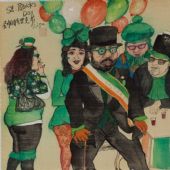 相对于朱新建以野逸的笔墨承载肉欲的意念,但始终映衬着画面背后那个孤高的文人化自我的背影,李津则通过“降格”与“贬抑”将自我释放到了真正的现实之境,从而告别了传统文人画的自我界定,以媚俗化的姿态寻觅生理的愉悦感,在他的那些画作之中,我们不时地捕捉到他的那样一个自己的存在,那是一个在满桌佳肴前大快朵颐的人,一个和女性尽享鱼水之欢的人,偶尔,这个身影出现在文人雅集之中,但吸引他眼球的并非高雅的清谈或歌吹,而是女人的臀部和鸡腿,两者被表现得如此肥美浓腻,强烈地撩动着欲望和神经,同时也对周围那些沉迷于形而上思维的高士们构成了挑逗与反嘲……通过类似的对比性呈现,他确立了一个执迷于世俗享乐的自我形象,并且在“食”与“色”两种题材的反复书写中予以强化,这两种题材在他的创作形态中并不止于并行的关系,而是处在了进一步的相互转换之中:“食”成为了“色”的隐喻,瓜果被描绘成阴茎,由女人握在手中加以亵玩,反之亦然,他笔下的女性肉体也令人联想到丰盛、荤腥、热烈的宴席,如果说这样的表达会令女性主义者心生不满的话,他在另一些作品中似乎对此进行了“赎还”:粗犷的男人穿上透明的纱裙,故作媚态……这种易装癖所意味的“性别的颠倒”,与他那些泛性论的颓靡表达一样,都可以视为对于画家—文人这种历史身份的消解,与此相辅证的是他画面中密密麻麻、“纵横歪倒” 的题款,也一反传统文人画中的留白习惯,仿佛对“众声喧哗”(heteroglossia)的民间狂欢氛围的刻意渲染。