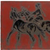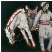 到了20世纪90年代,妥木斯这一代人有了走出国门的机会。妥木斯去到法国、意大利和西班牙观摩西方油画原作,他感叹:“这些原作给我心理带来了很大的冲击。”“这才是油画啊!这么厚重!油画的语言是这样的,我们怎么办?我们是追随吗?有种望尘莫及的感觉。”此时的妥木斯已年过五旬,但是他决心让自己的油画语言更丰满,更有厚重感,于是他创作了《年轮》等有肌理感觉的作品,他的创作手法也开始变得多样。但是他并不是照抄西方的绘画语言,他从中国传统的艺术形式中吸取养分,表现具有敦煌壁画的“残破感”的绘画,表现像汉画像石一样的作品,表现具有音乐旋律的作品,等等。这一时期他创作了《牧人》《冬至》等经典的作品,画中的“情”“味”了然于纸上。妥木斯作为蒙古草原走出来的画家,他的牧马题材绘画刻画独到,《蒙古人和马》等作品系列中,马的动态已经达到了一种书写的自由境界。