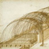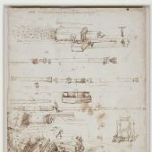 Project of an automatic vapour smoke-jack. Leonardo da Vinci. Codex Atlanticus, folio 21r (detail). Institute de France, Paris.